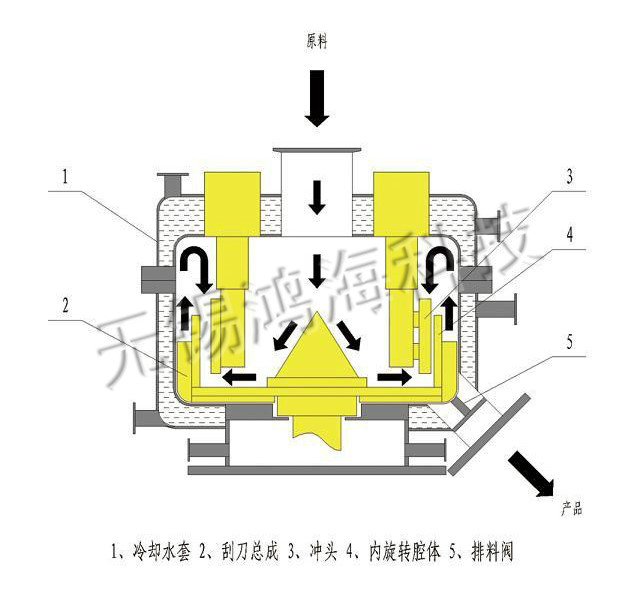 此設(shè)備主要是針對(duì)電池行業(yè)設(shè)備,上進(jìn)料口(負(fù)極材料、導(dǎo)電劑、粘接劑、電解質(zhì))經(jīng)機(jī)械融合及高精密混合處理,構(gòu)成不同材料成分的分布,提高產(chǎn)品材料的利用率,構(gòu)成不同材料的成分顆粒之間的復(fù)合化,降低產(chǎn)品的BET比面積,讓產(chǎn)品顆粒以高密度填充;將納米級(jí)粉末包覆在微米級(jí)的顆粒上,從而改進(jìn)粉體的許多物理,化學(xué)特性。機(jī)械融合設(shè)備就是基于此原理開發(fā)的。物料在轉(zhuǎn)子中高速旋轉(zhuǎn),在離心力的作用下緊貼器壁,在轉(zhuǎn)子和定子擠壓頭之間高速穿過。在這個(gè)瞬間,物料同時(shí)受到擠壓力和剪切力的作用,由于高速旋轉(zhuǎn),物料在轉(zhuǎn)子和定子之間循環(huán)往復(fù),不斷地受到擠壓力和剪切力的作用,在摩擦力的作用下顆粒表面達(dá)到一種機(jī)械熔融狀態(tài),從而將納米級(jí)的超細(xì)粉末包覆在微米級(jí)的顆粒上。